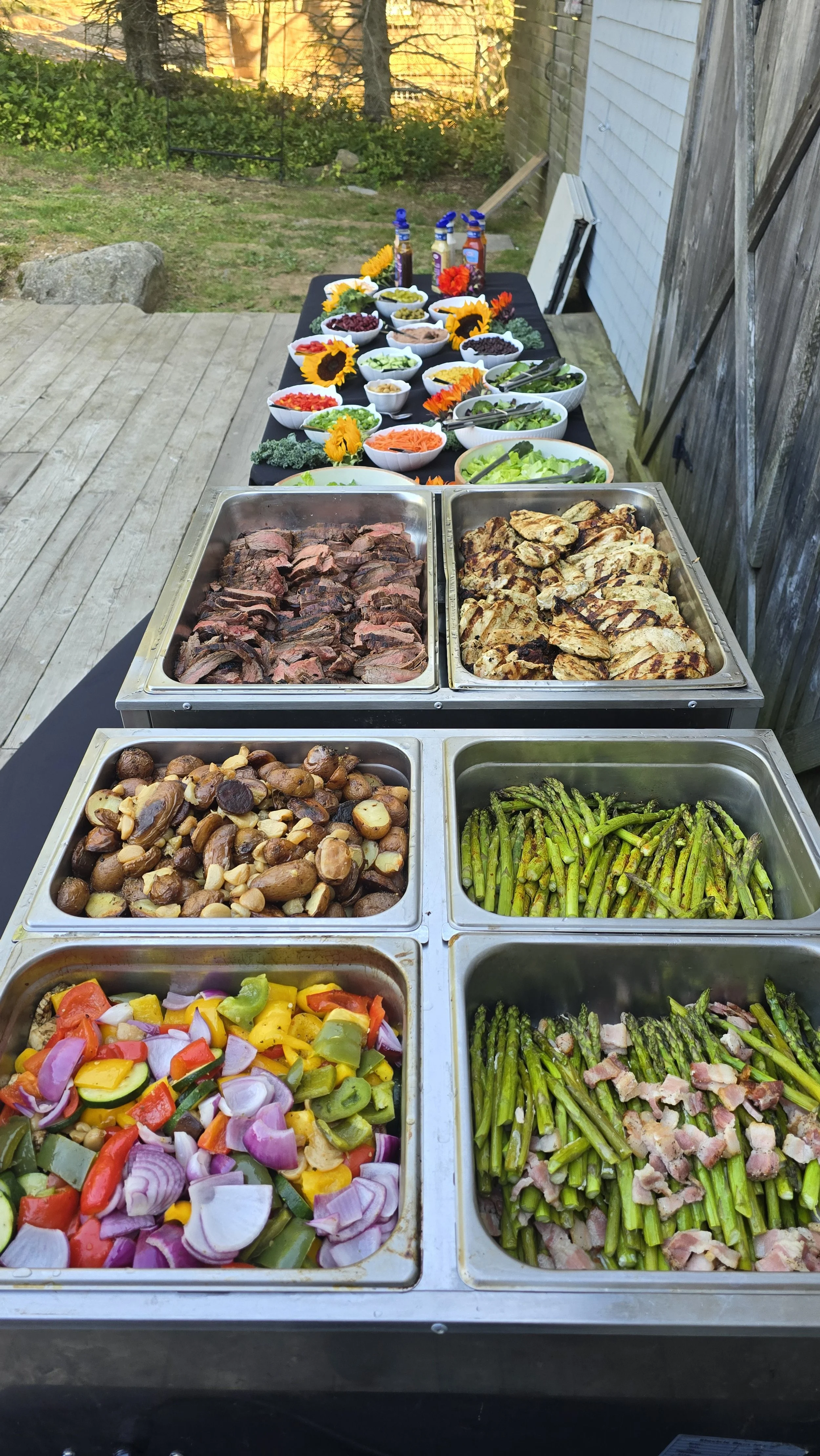 2 Proteins, 3 Sides, Salad Bar, Dessert Table